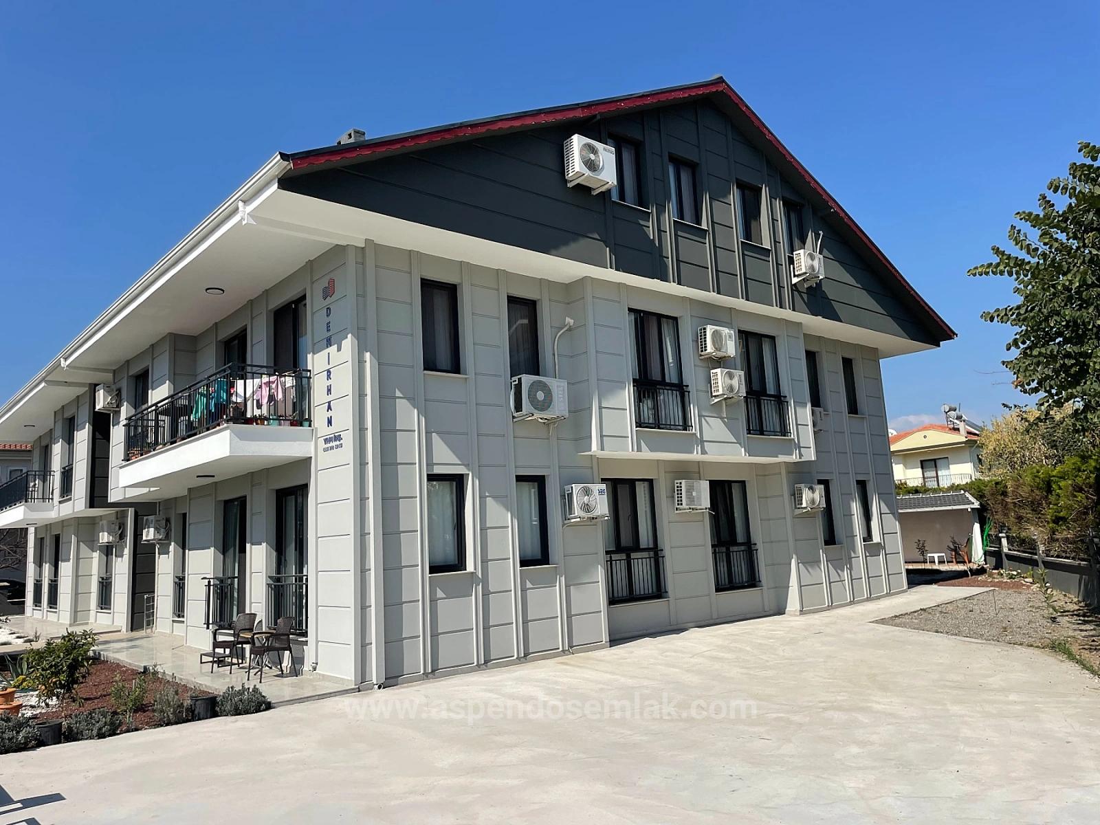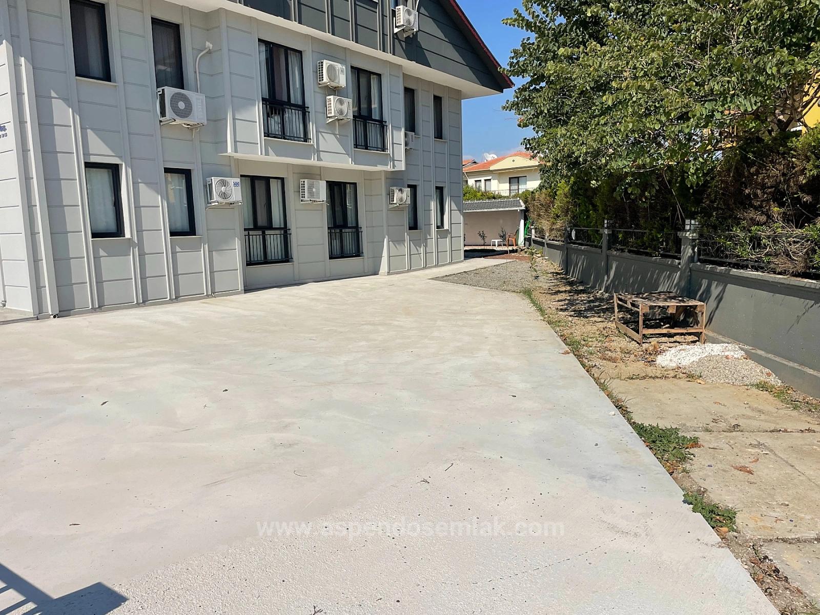In einem Gebäude mit insgesamt 8 Wohneinheiten auf einem 1000 m² großen Grundstück im Zentrum von Dalyan steht eine Erdgeschosswohnung zum Verkauf. Die Wohnung verfügt über 2 Schlafzimmer, 1 Wohnzimmer mit offener Küche und 1 Badezimmer mit einer Wohnfläche von insgesamt 75 m². Sie ist komplett möbliert. Das Gebäude ist neu und renovierungsbedürftig. Zur Anlage gehört ein Gemeinschaftspool. Einkaufsmöglichkeiten und Supermärkte sind fußläufig erreichbar. Die Wohnung liegt 10 km vom Strand Iztuzu und 25 km vom Flughafen entfernt. Der Preis beträgt 210.000 Euro.