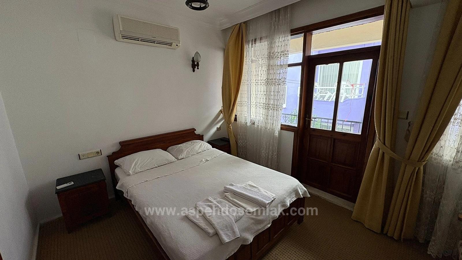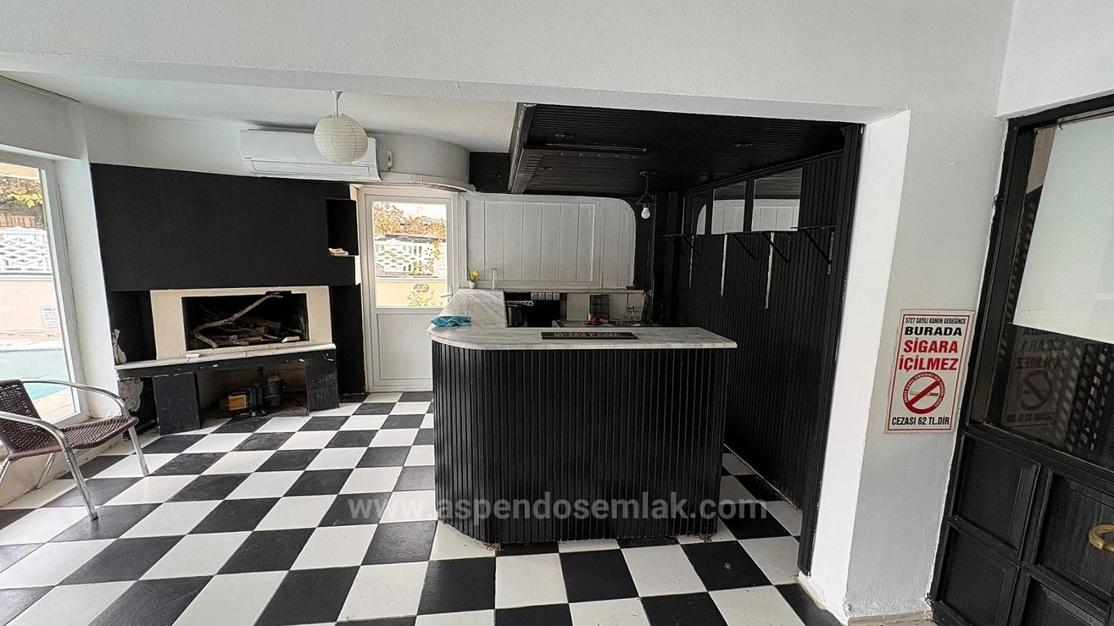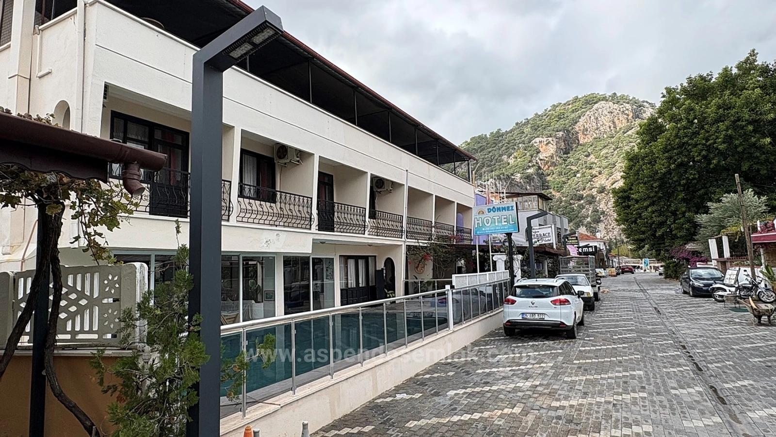 Der Pool hat eine Fläche von 50 m². Am Eingang befinden sich Rezeption und Wartebereich. Die großzügige Terrasse bietet einen herrlichen Blick auf die Kanäle und Felsengräber. Sie umfasst außerdem eine Küche und eine Bar und ist 400 m² groß. Die Terrasse eignet sich ideal als Restaurant. Einkaufsmöglichkeiten sind fußläufig erreichbar. Der Strand von Iztuzu ist 10 km und der Flughafen Dalaman 25 km entfernt. Preis des Boutique-Hotels: 85.000.000 TL (Das Hotel kann auf Anfrage komplett renoviert werden.)