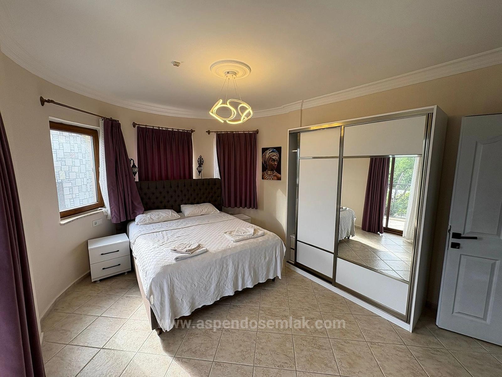A villa with 3 bedrooms, 1 living room with open kitchen, 3 bathrooms and a private pool is for sale in Dalyan Gülpınar, on a 566m2 plot with two road frontages. It is fully furnished. Each room has air conditioning. There are 2 balconies and a large terrace. It is within walking distance of shopping markets and the local market. The villa, which is 10km from Iztuzu Beach and 25km from the airport, has nature and forest views. Price: 365,000 GBP