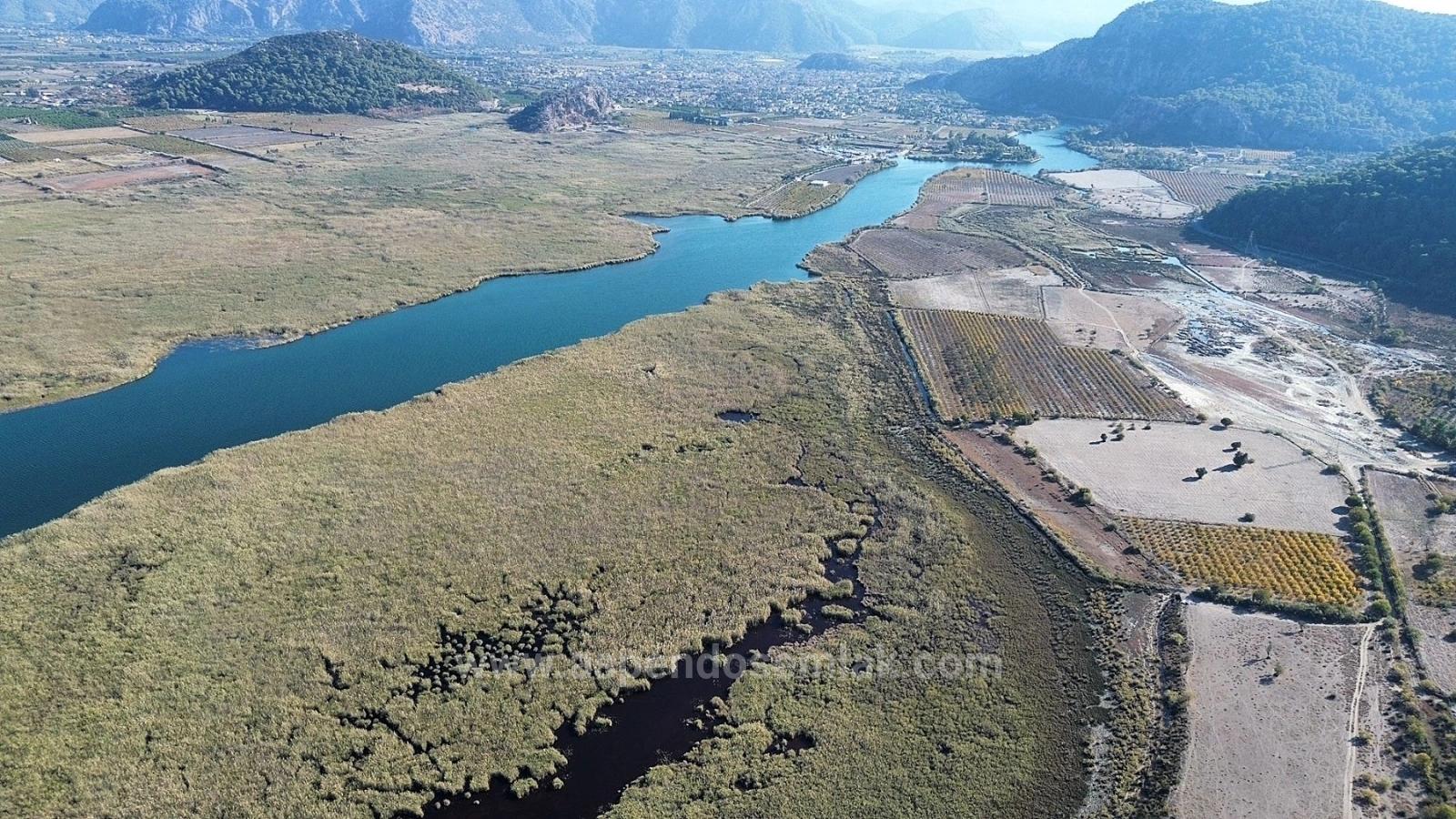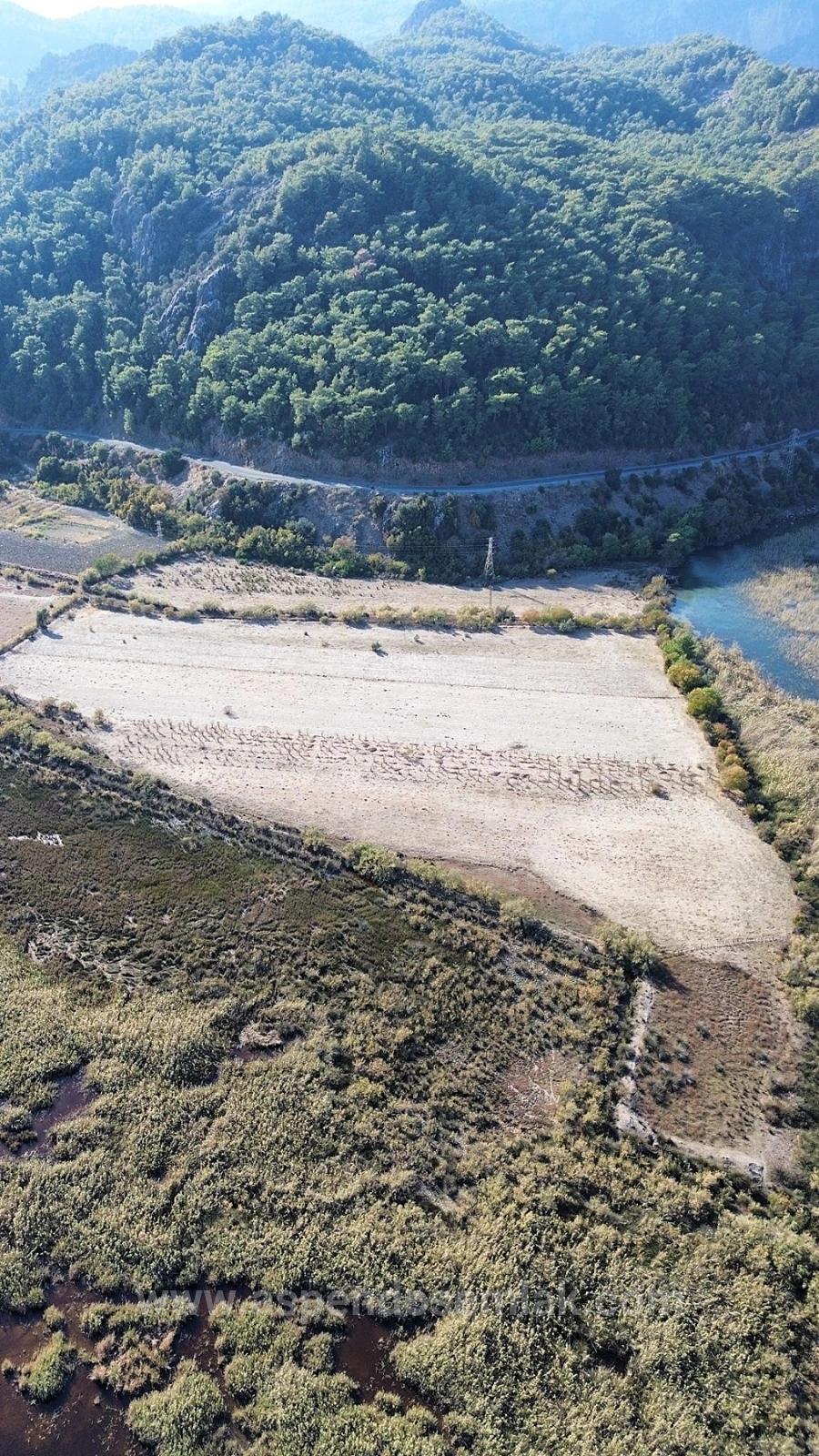 A 3210m2 plot of land (2B) is for sale in Çandır Horozlar area, right on the lakefront. Suitable for future investment. Electricity is available nearby. The land is 4km from Dalyan, 1km from the hot springs, 25km from Köyceğiz, 10km from the sea, and 35km from the airport. It offers views of nature, forest, and the lake. Price: 5,250,000 TL