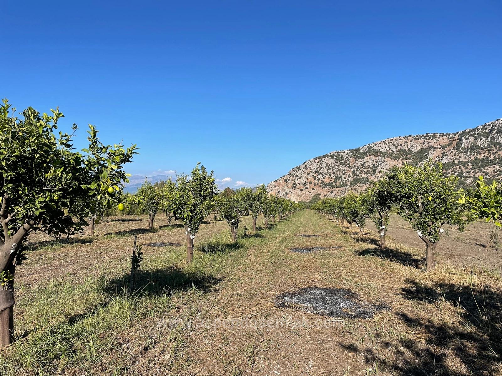 A 6,600m2 fully developed lemon orchard for sale in Dalyan, close to the center, with mountain views. There are no problems with road access, water, electricity, or telephone. There are local and foreign investors in the surrounding area. The land has an electricity subscription. The land is very close to the 1/1000 scale zoning plan and is a region that will be included in the first plan in the future. I recommend it for future investment. It is 5 minutes from shopping and markets, 10 km from Iztuzu beach, and 20 km from the airport. The price of the land is: 18,500,000 TL