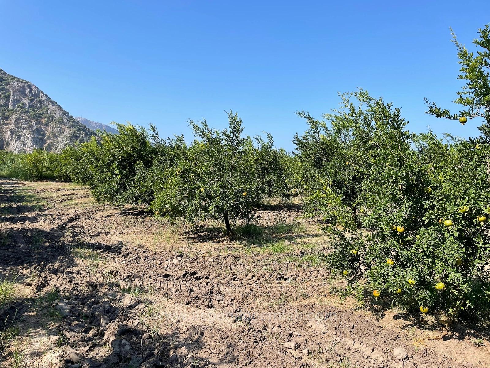 Продается 1/2 доли (10 000 м2) земельного участка площадью 20 000 м2 с целым гранатовым садом в районе Герендюзю города Дальян Арикбаши. Земля разделена по взаимному согласию. Проблем с подъездными путями, водоснабжением, электричеством и телефонной связью нет.Урожайность поля составляет приблизительно 50-60 тонн фруктов в год. Расположенный в 2 км от Дальяна, в 8 км от пляжа Истузу и в 28 км от аэропорта, участок предлагает виды на природу и лес. Цена: 19 500 000 TL