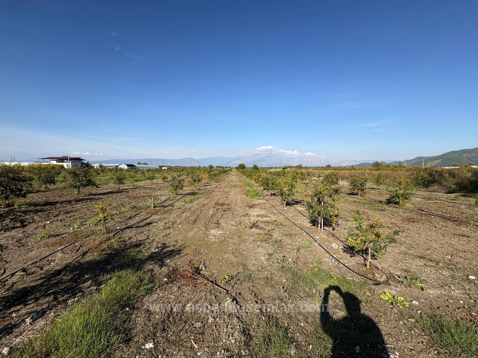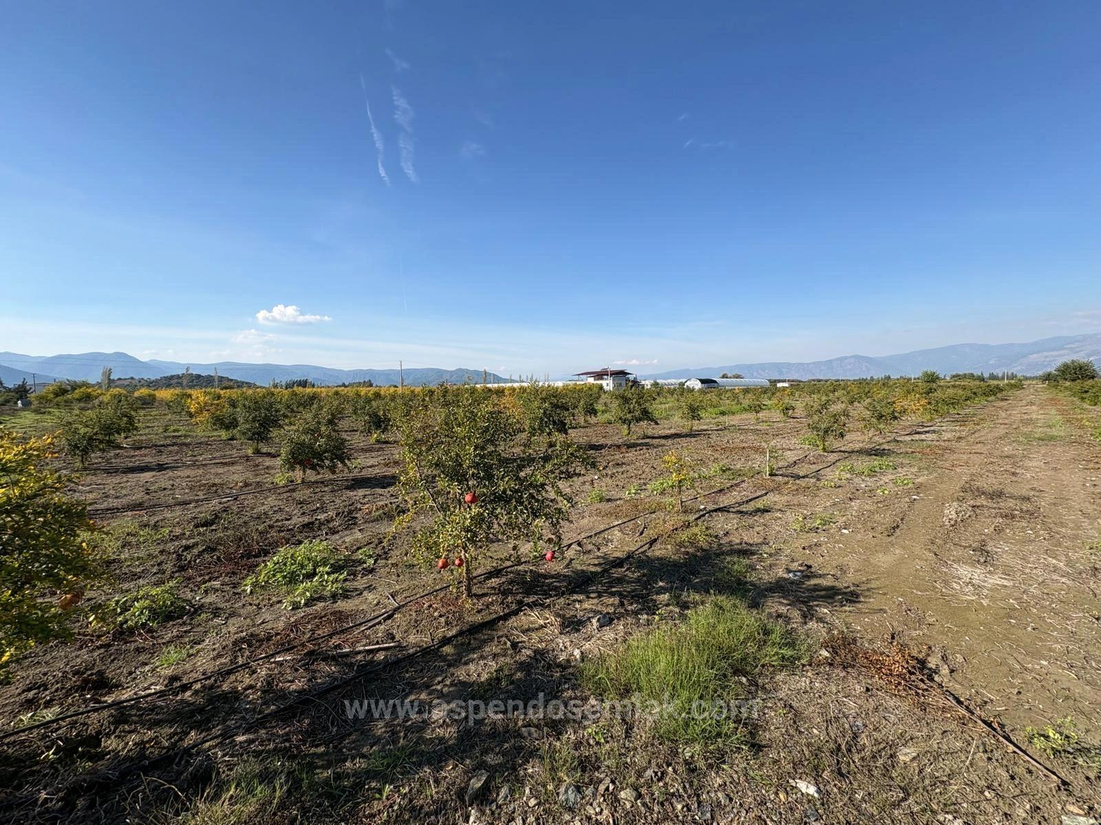В Эскикёе продаётся участок общей площадью 21 500 м2, состоящий из двух смежных участков площадью 11 262 + 10 238 м2. На участке растут двухлетние гранатовые деревья. Нет проблем с дорогой, водой, электричеством и телефонной связью. На участке есть электричество и глубокая артезианская скважина. Система орошения капельная. К участку проложена кадастровая дорога. Вокруг расположены населённые пункты. Стоимость участка, расположенного в 3 км от Даляна, в 10 км от Ортаджи, в 13 км от пляжа Изтузу и в 25 км от аэропорта: 37 500 000 турецких лир