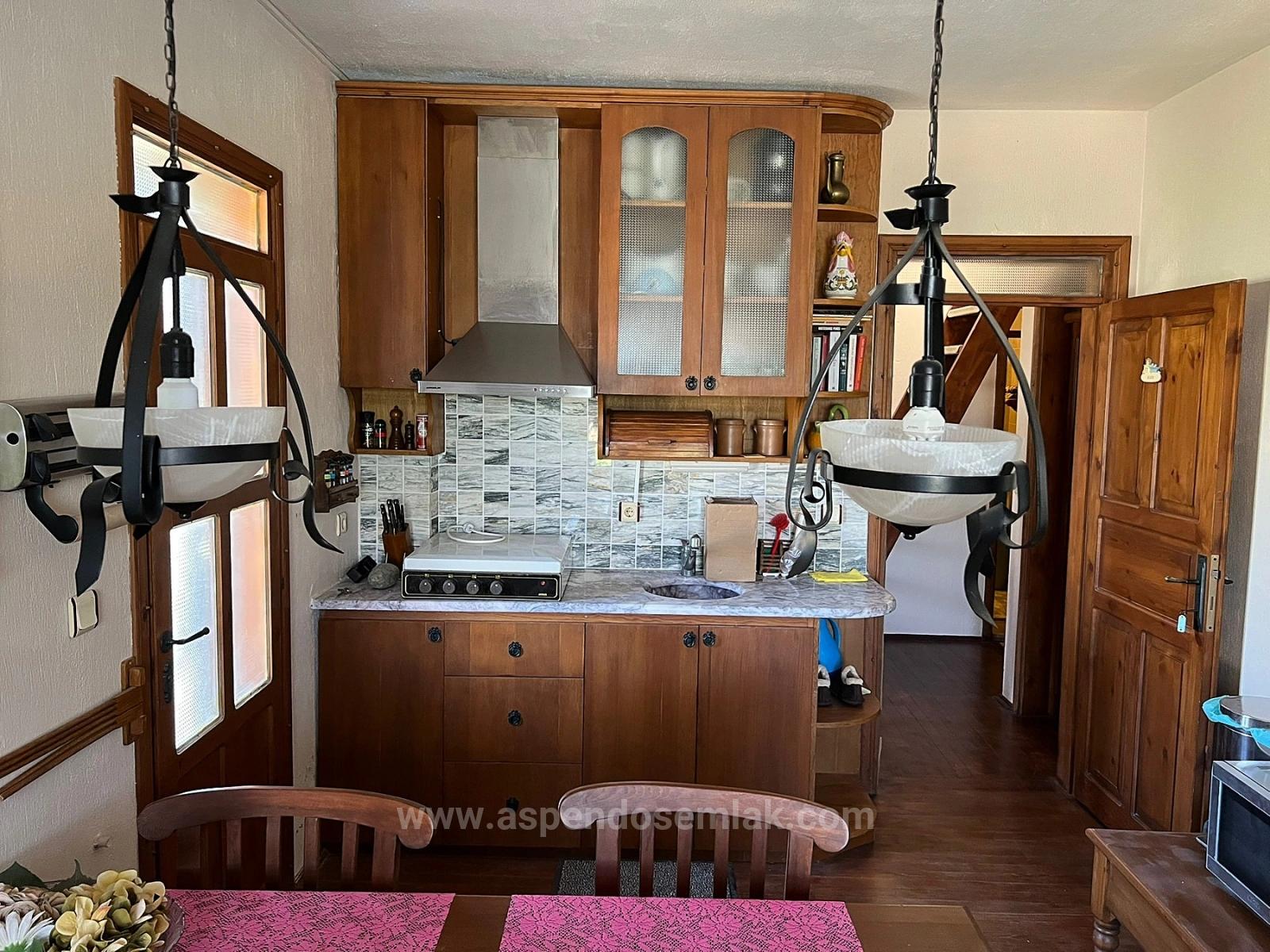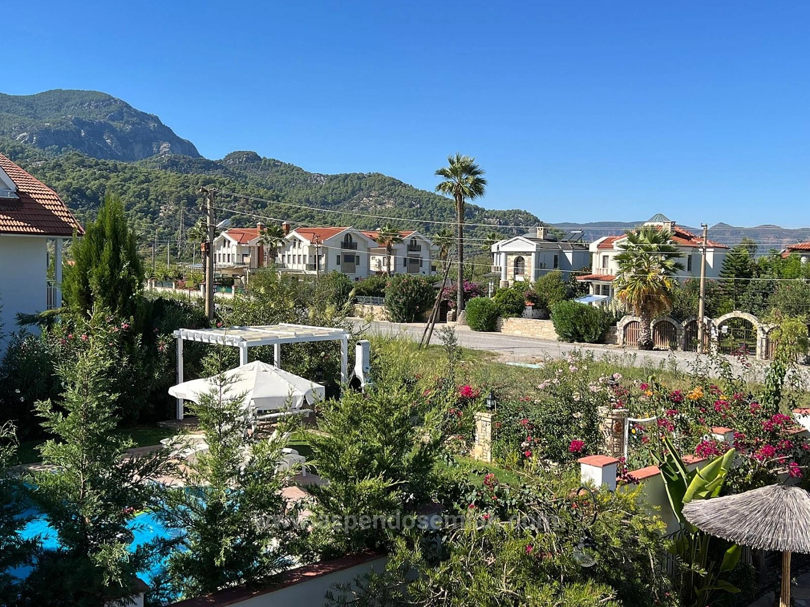 Отдельно стоящая каменная вилла продается на угловом участке площадью 580 м2 в районе Гюльпинар города Дальян. Из окон открывается беспрепятственный вид на зеленую зону. В главном здании расположены 4 спальни, большая гостиная с открытой кухней, 3 ванные комнаты, 3 балкона и большая терраса. В каждой комнате установлен кондиционер. Вилла полностью меблирована. Вилла полностью построена из натурального камня с преимущественно деревянной отделкой. Визуально она очень стильная и соответствует стилю региона. На территории есть открытый бассейн площадью 45 м2 с системой соленой воды. Также имеется отдельная ванная комната (1+0) и около 50 м2 жилой площади. Кроме того, есть зона для хранения бассейна и кладовая для материалов. Вилла недавно отремонтирована и не требует дополнительных вложений. Она находится в пешей доступности от торговых центров, в 10 км от пляжа Истузу и в 25 км от аэропорта. Из виллы открывается вид на природу и лес. Цена: 500 000 GBP