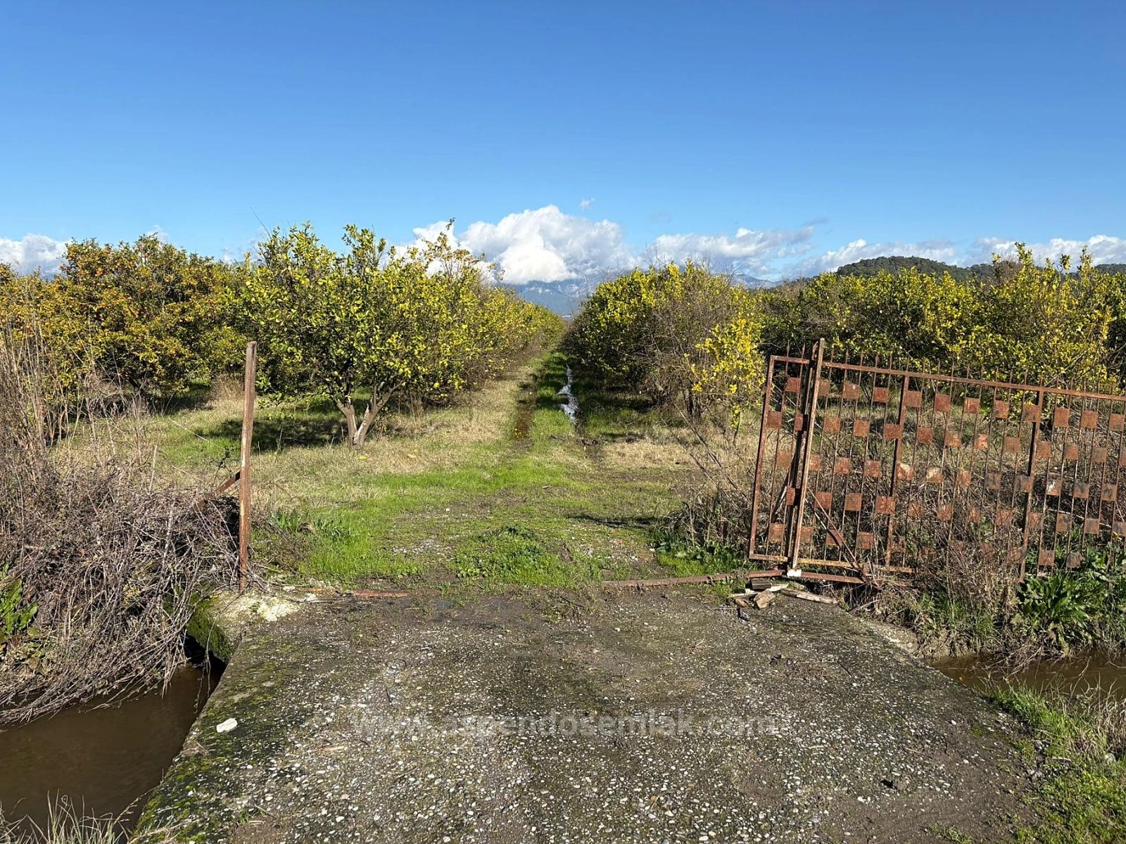 В районе Ортаджа Тепеарасы, прямо рядом с асфальтированной дорогой, продается земельный участок площадью 23 000 м2, подходящий для виноградников и фруктовых садов. Проблем с подъездными путями, водоснабжением, электричеством и телефонной связью нет. Сад имеет собственную частную подписку на электроэнергию. На участке растут гранатовые и лимонные деревья, а также несколько апельсиновых и мандариновых деревьев. Участок расположен в 5 км от Дальяна, в 15 км от пляжа Истузу, в 10 км от Ортаджи и в 25 км от аэропорта. С участка открывается вид на природу и лес. Цена: 45 000 000 турецких лир.