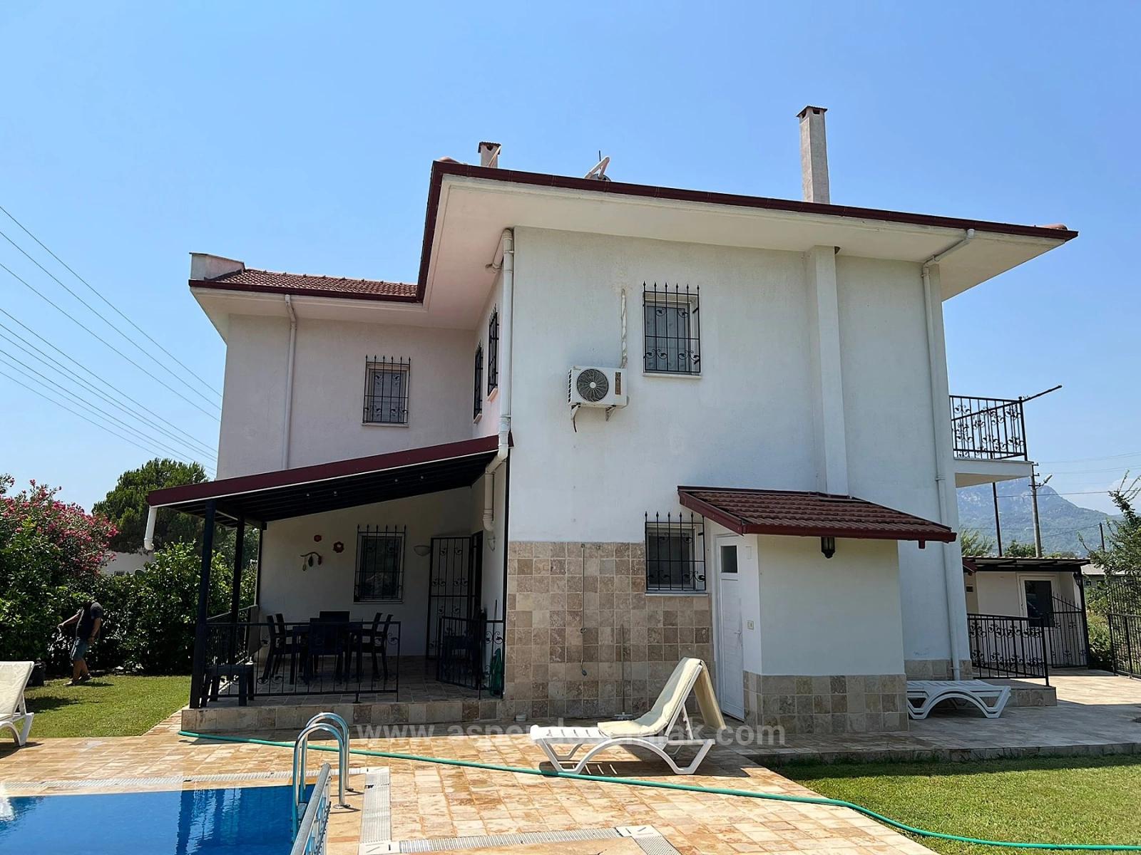 Dalyan'da köşebaşı 600m2 arsa içerisinde 3+1 havuzlu villa satılıktır. Giriş katında salon açık mutfak, lavabo ve wc ikinci katta ise 3 yatak odası, 1 ortak kullanımlı banyo vardır. 1 yatak odası da ebeveyn banyoludur.  Her oda klimalıdır. Isı pompalı kalorifer sistemi bulunmaktadır. Full eşyalıdır. Müstakil girişli olup bahçesinde depo, lavabo-wc ve kapalı otopark yeri vardır. Çocuk havuzu mevcuttur.