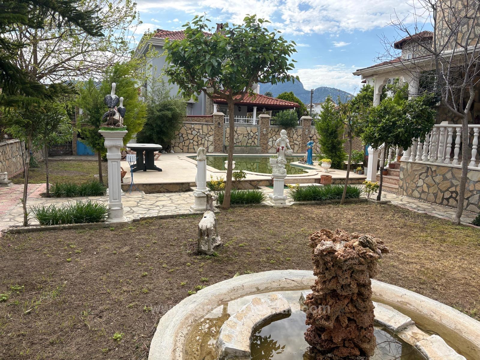 Dalyan Gülpınar'da 500m2 arsa içerisinde 3 yatak odalı, 1 bağımsız mutfak, 2 banyolu ve salon olan villa satılıktır. Müstakil açık yüzme havuzludur. Bahçesinde barbekü alanı ve çeşitli meyve ağaçları bulunmaktadır. Full eşyalıdır. Alışveriş marketlerine ve semt pazarına yürüme mesafesindedir. İztuzu Plaj'ına 10km, havaalanına 25km mesafesi olan villa doğa ve orman manzaralıdır. Fiyatı: 18.500.000 TL